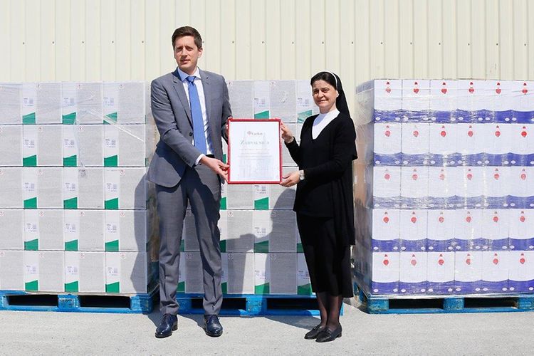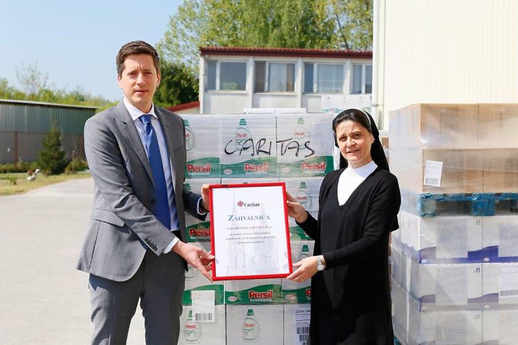 U ime zagrebačkog Caritasa donaciju je preuzela ravnateljica s. Jelena Lončar, koja je tom prilikom izjavila: »U ovim izvanrednim okolnostima zaposlenici i volonteri Caritasa daju sve od sebe kako bi pružili pomoć onima koji su u potrebi zbog posljedica potresa te starijim osobama kojima je zbog korona virusa zabranjeno kretanje. Do sada smo tako, uz pomoć župnih Caritasa, podijelili 12 tona pomoći u prehrambenim namirnicama i higijenskim artiklima. Ova velika i vrijedna donacija tvrtke Henkel Croatia uvelike će pomoći brojnim obiteljima koje su u potrebi bilo zbog potresa bilo zbog korona virusa.«